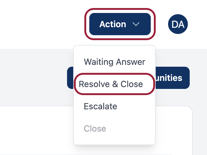 - Click "Resolve & Close"